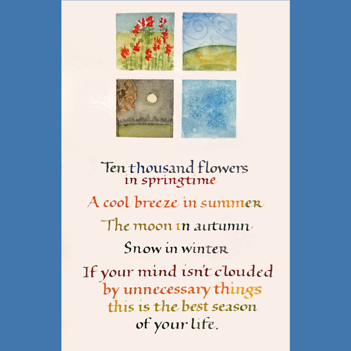 Helena, MT | Original artwork, calligraphy commissions, family trees; certificate design, greeting cards; calendars; posters; calligraphy art on your walls or furniture; teaching. See visual samples here. | |
